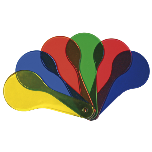 Yellow + Blue = Green ... According to the mixture of two colours you will get new colours. This can be shown with this colour panel. 6 transparent colour cards. Material: plastic Measurements: 15 x 7 x 0.2 cm 3 years and up