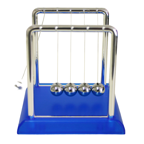 Making energy transmission visible ... Fascinating toy on a scientific basis Experience the magic of energy transmission with this clanging-ball stand. Let go of one of the two outer balls at the side and watch it hit the others, then be astounded as only the outer balls swing to and from 5 metal balls fixed to a plastic frame and arranged one behind the other above a plastic base. Colour depending on stock. Material: synthetic material Measurements: 9 x 10.5 x 10.5 cm
